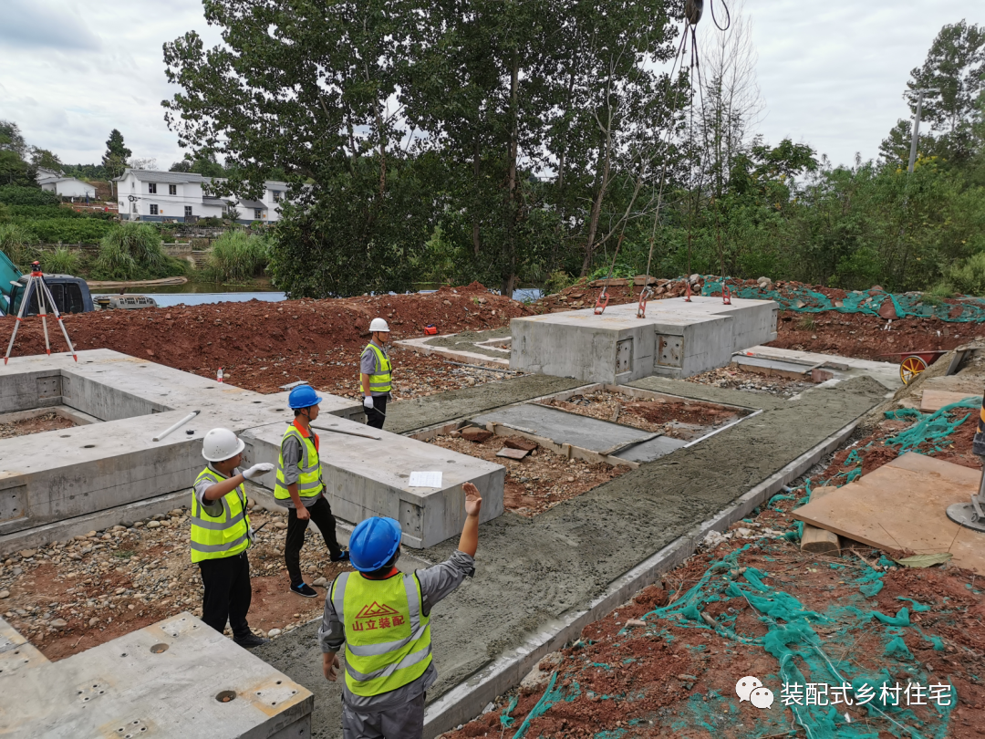 2022年9月23日,示范项目正式在金堂县云合镇开工,拼装过程采用了线上直播的方式同步进行,全程直播全装配式体系的修建过程,预计现场安装时间为7天。